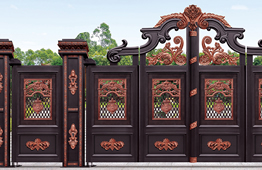 別墅庭院大門材質(zhì)選用高端硬鋁合金型材,以及整體實(shí)心鑄鋁花件,純手工拼接制作而成。